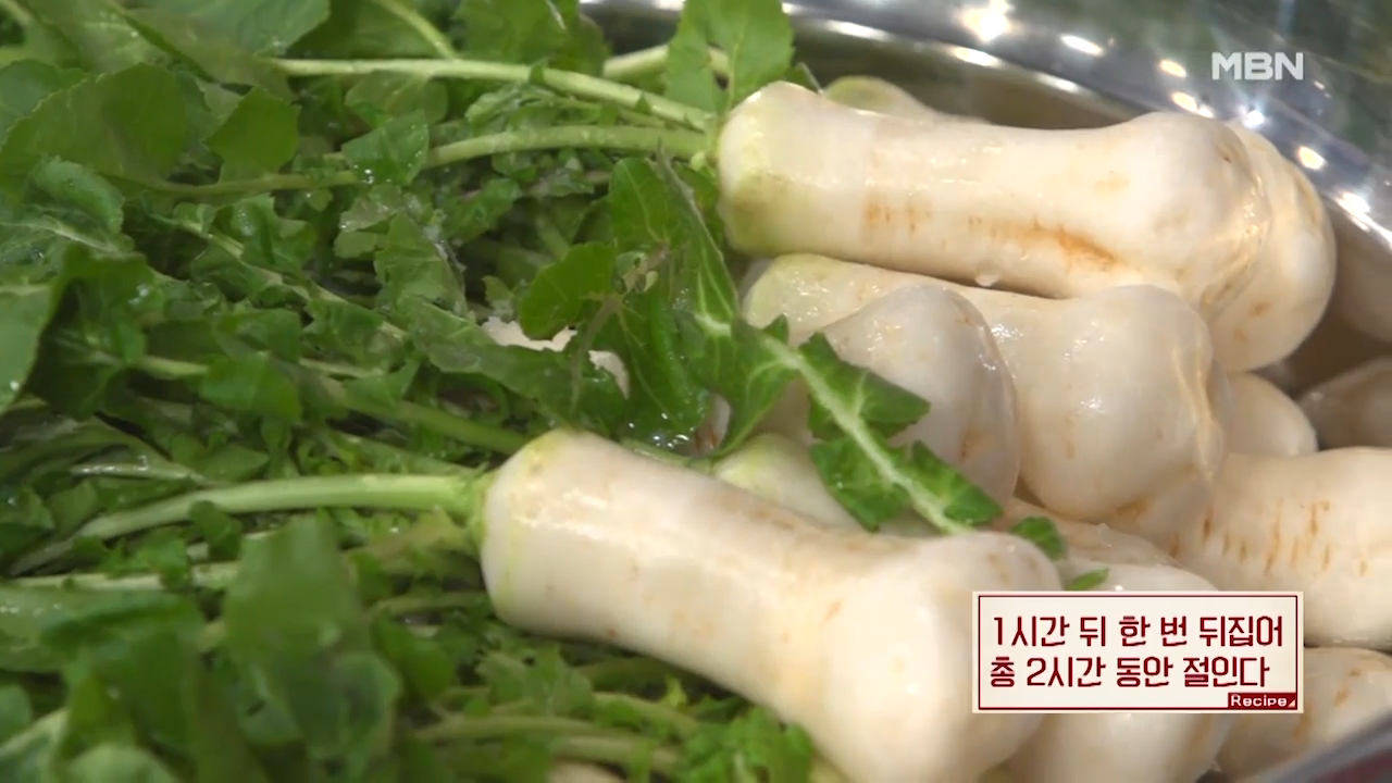 ※총각무를 절이는 시간은 1시간 뒤 한 번 뒤집어 총 2시간 동안 절여줍니다.