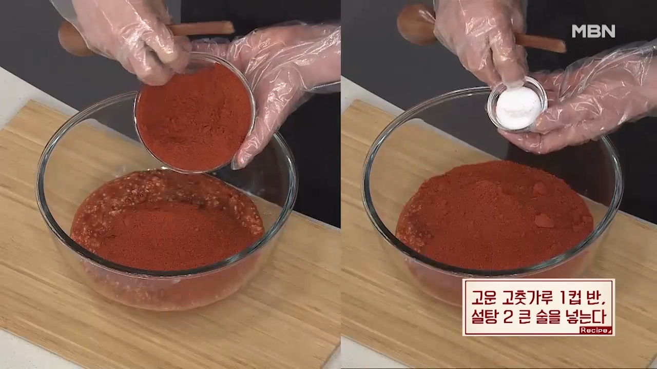 ③ 고운 고춧가루, 설탕 넣기