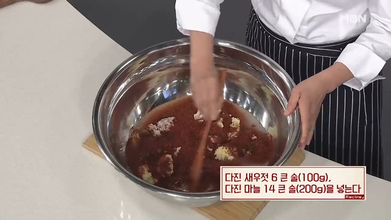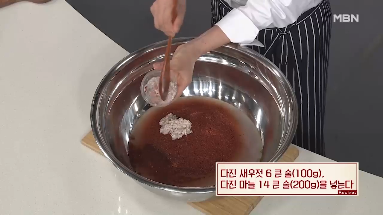 ▶다진 새우젓 6 큰 술(100g)을 넣어줍니다.