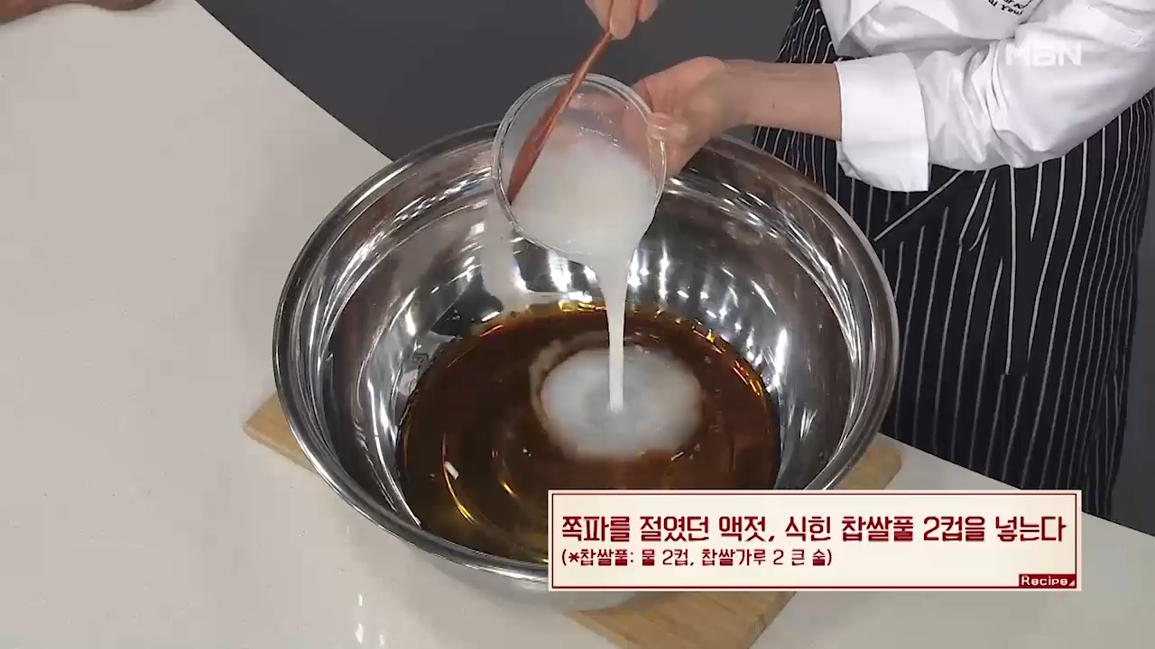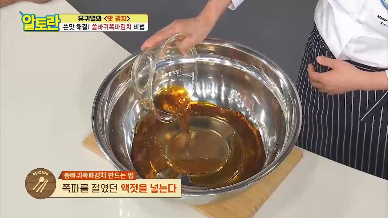 ▶쪽파를 절였던 액젓을 넣어줍니다.
