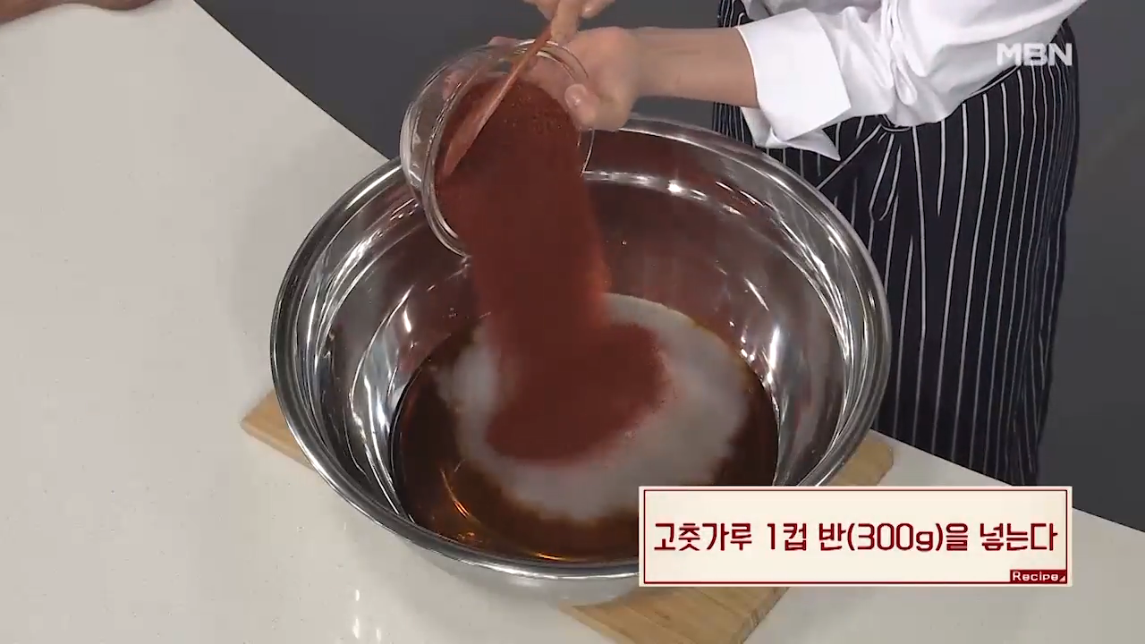 ▶중간 고춧가루 1컵 반(300g)을 넣어줍니다.