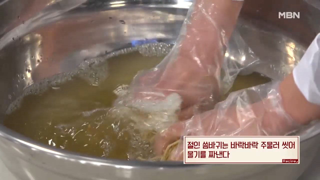 ▶절인 씀바귀는 바락바락 주물러 씻어줍니다.