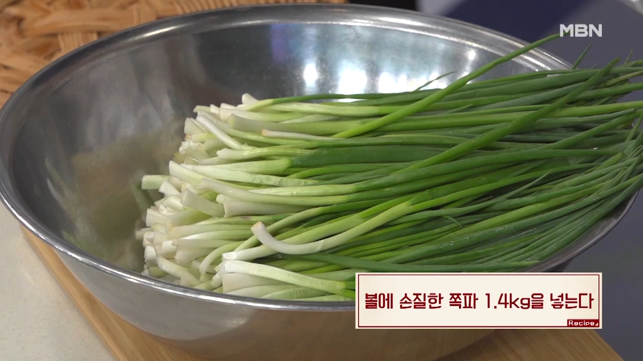 ▶볼에 손질한 쪽파 1.4kg을 넣어줍니다.