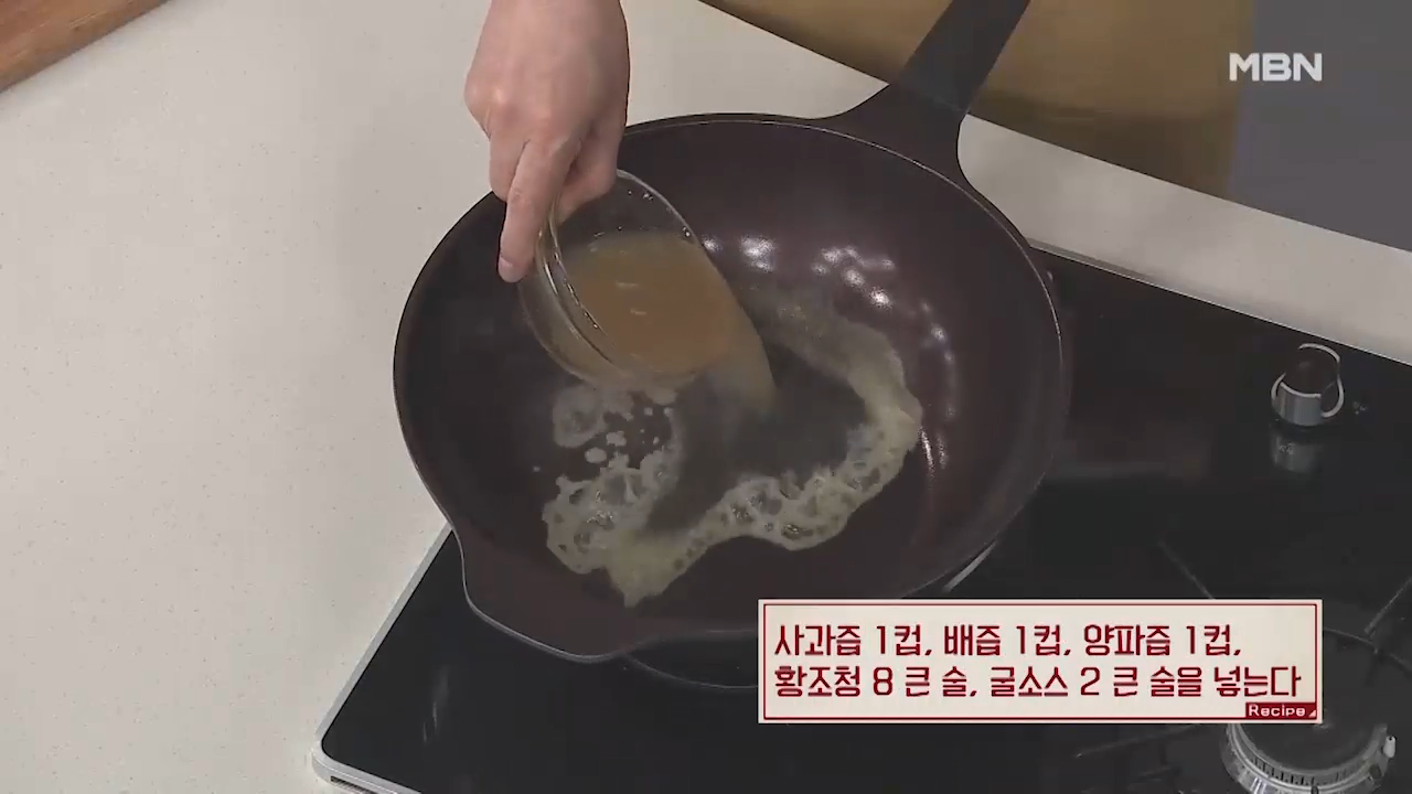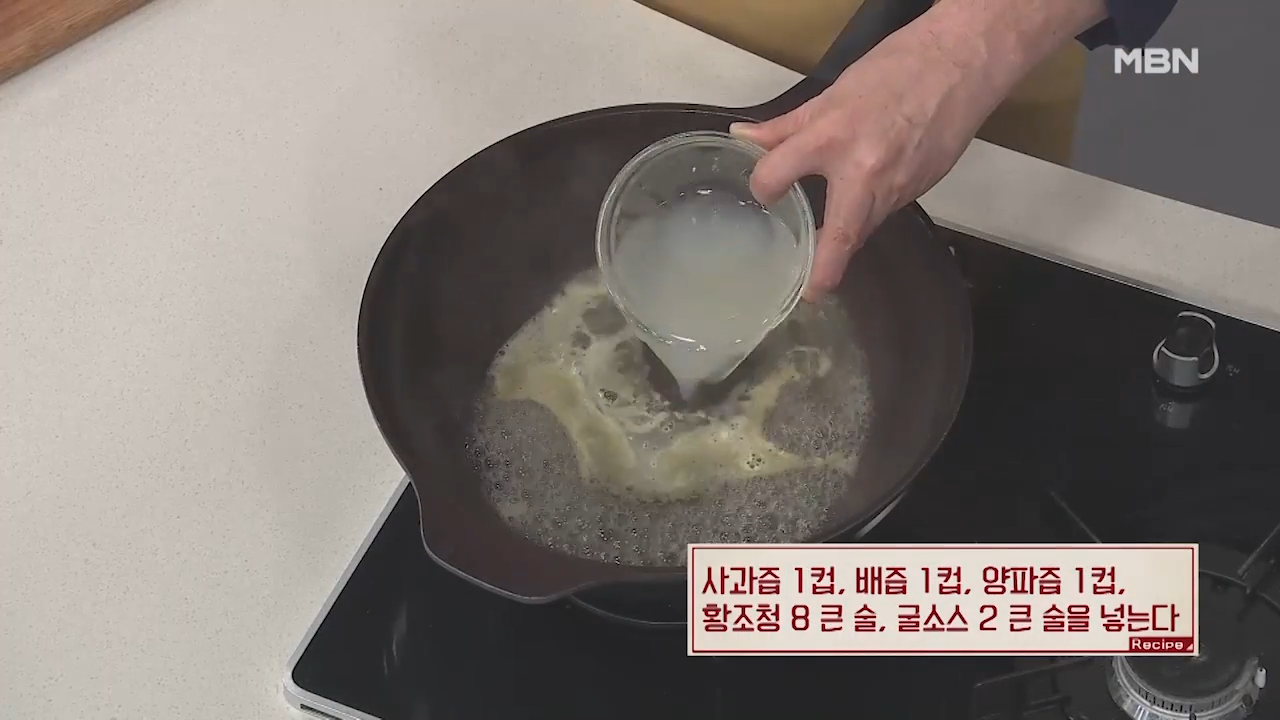 ① 사과즙, 배즙, 양파즙, 황조청, 굴소스 넣기