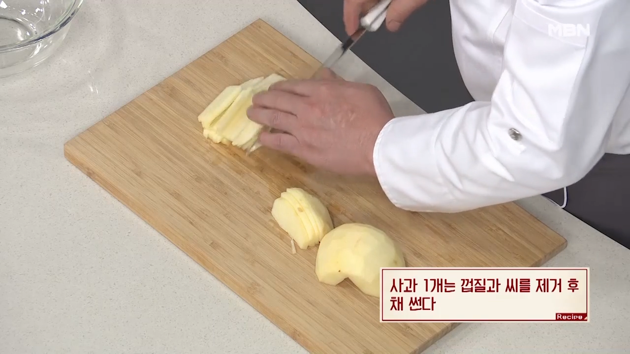 사과 1개는 껍질과 씨를 제거한 후 채 썰어줍니다.