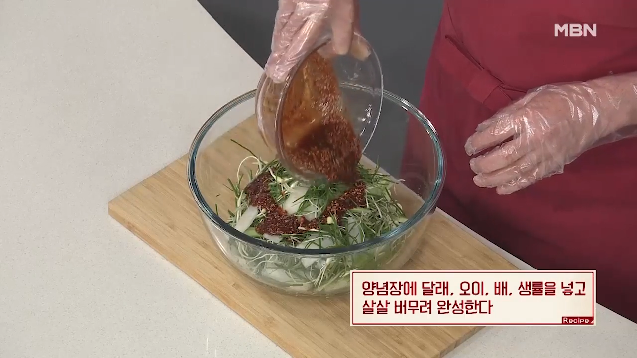 ▶채소의 숨이 죽지 않도록 살살 버무려 줍니다.