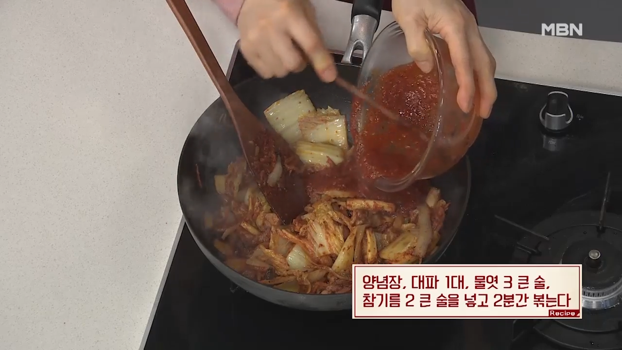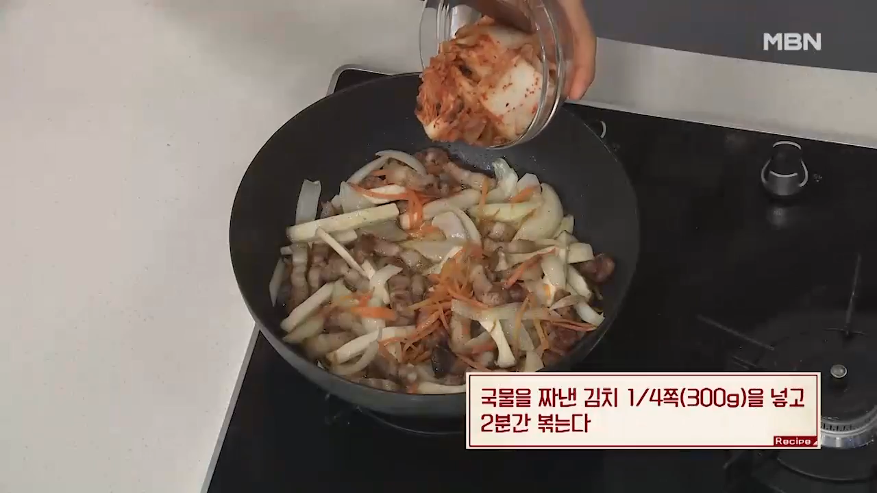 ※김치 역시 돼지고기를 볶은 후에 넣어줍니다. 고기와 김치를 함께 볶을 경우 김치가 물러져 아삭함이 사라지게 됩니다.