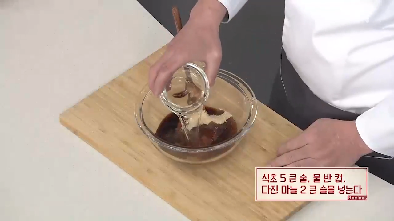 ▶식초 5큰술을 넣어줍니다.