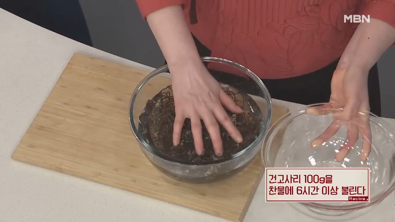 ▶건 고사리 100g을 찬물에 6시간 이상 불려줍니다.