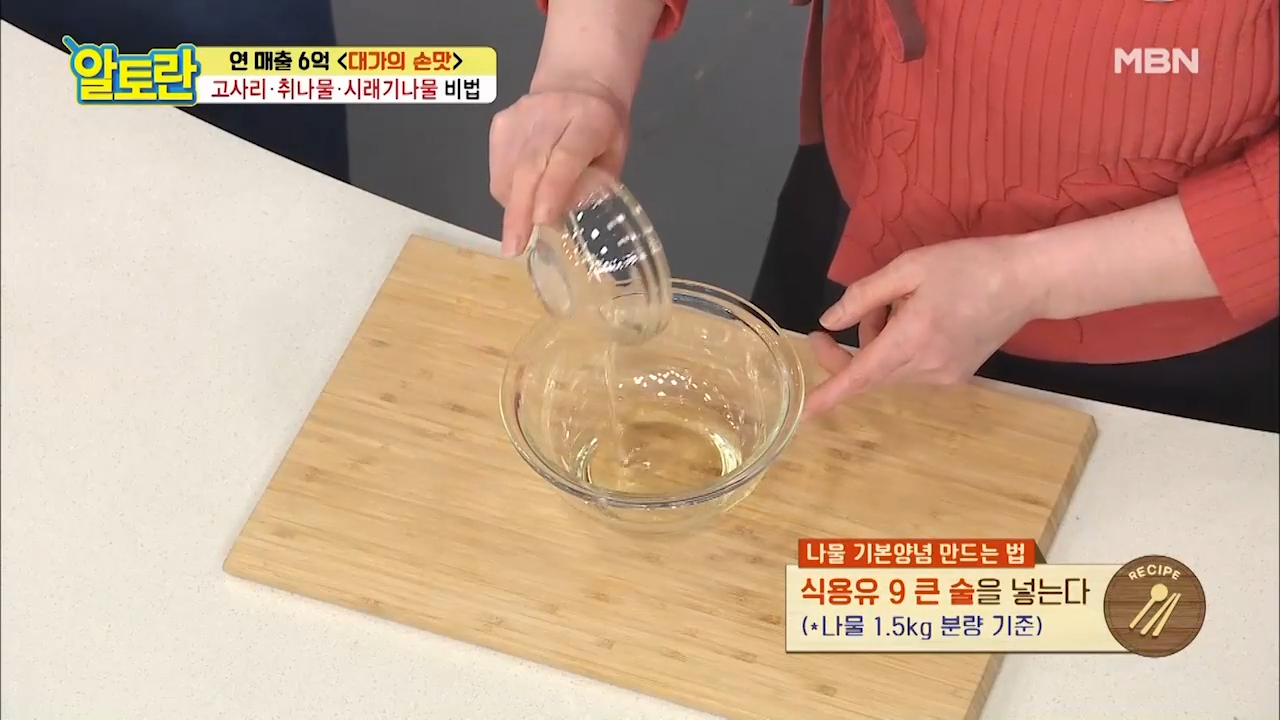 ▶식용유 9큰술을 넣어줍니다. 나물 1.5kg 분량 기준입니다.