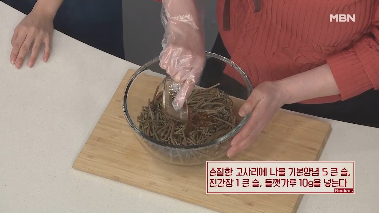 ▶고사리나물과 양념들이 잘 섞이도록 버무려 줍니다.