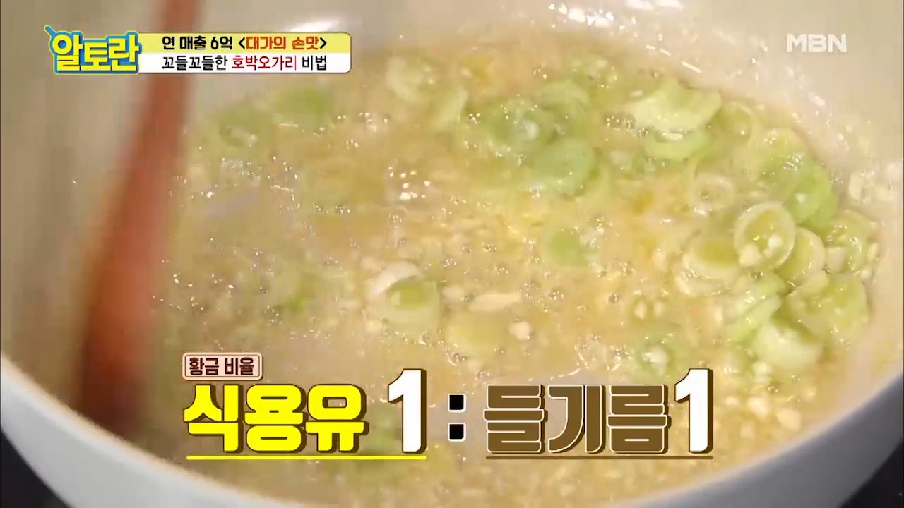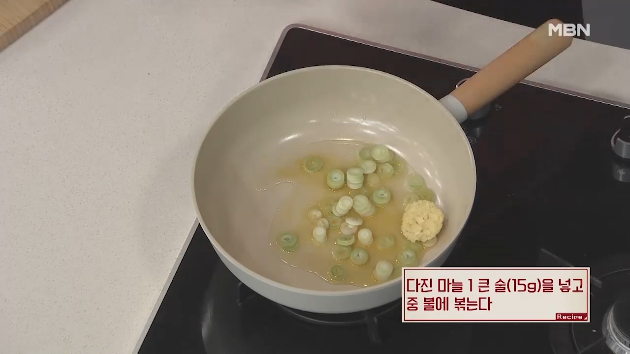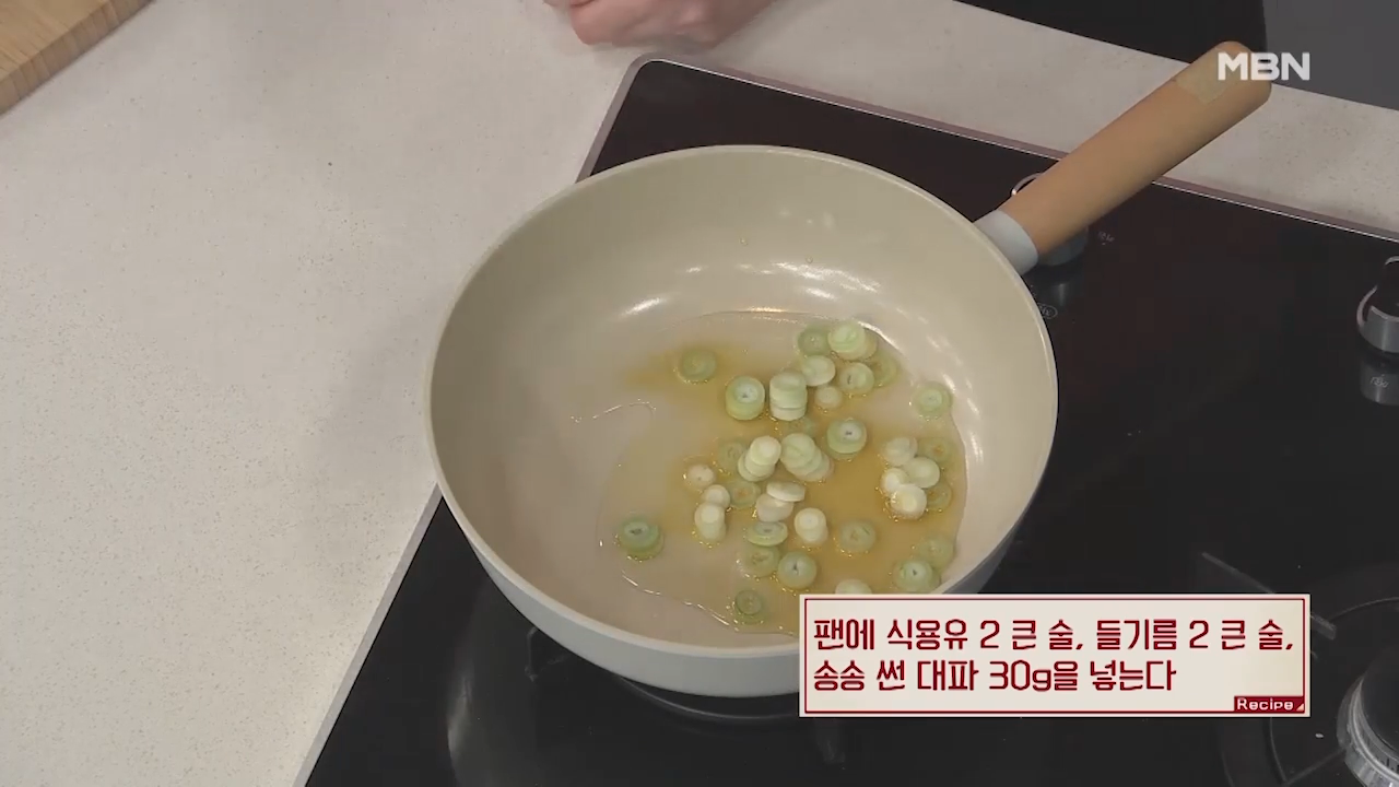 ※맛기름을 먼저 내는 이유는 식용유, 들기름에 마늘, 파를 먼저 볶으면 구수한 향과 감칠맛을 더할 수 있기 때문입니다.