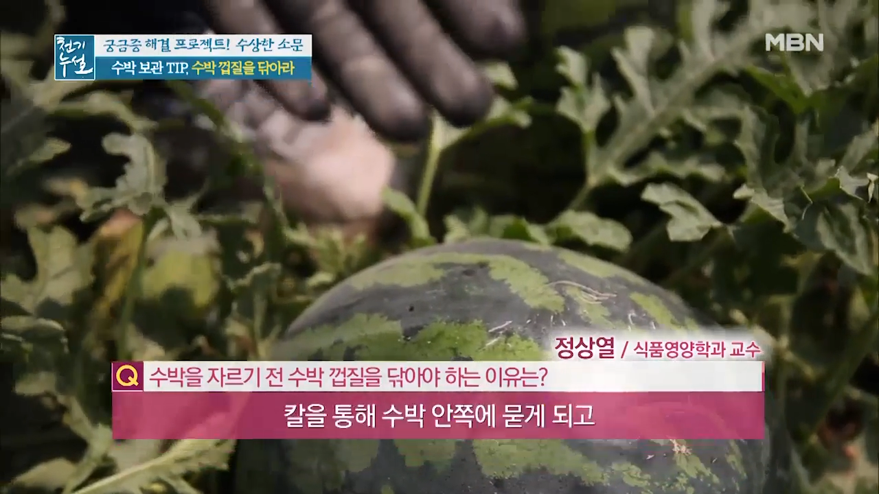 ※수박을 자르기 전에 껍질을 씻지 않으면 껍질에 묻어 있던 식중독 균이나 건강에 좋지 않은 균들이 수박을 자르는 칼을 통해 수박의 안쪽에 묻는 경우가 생겨 그대로 수박을 먹으면 수박에 세균이 번식돼 배탈이나 설사 등을 일으킬 수 있습니다.