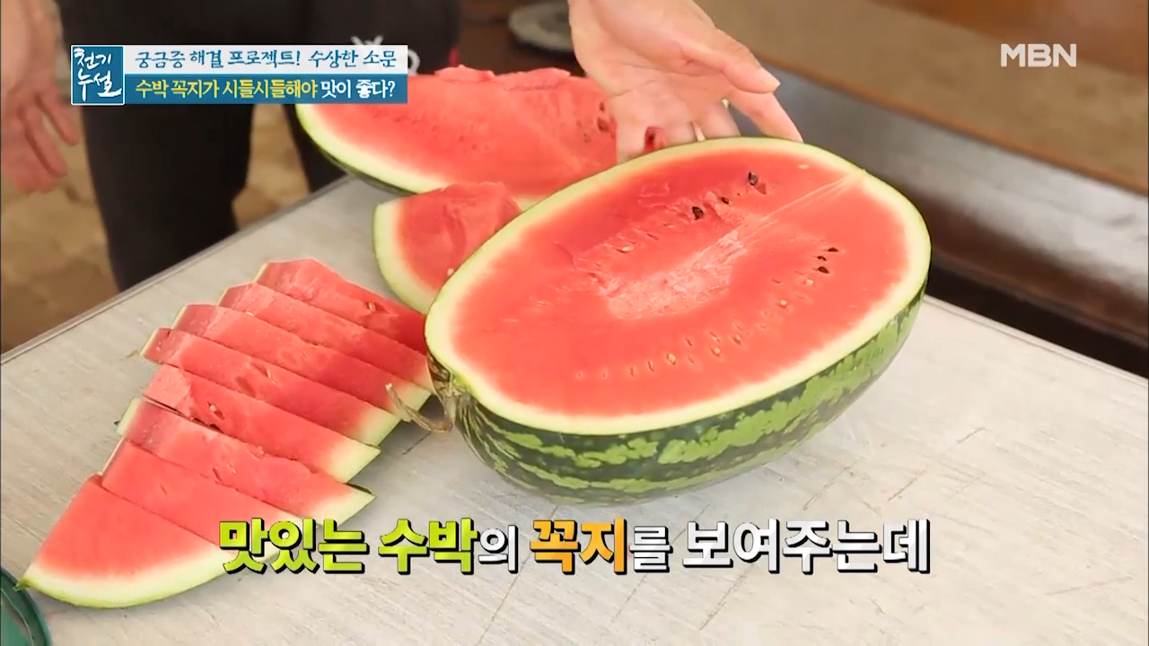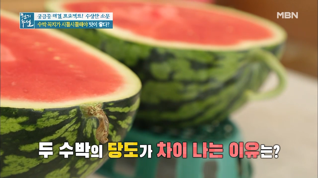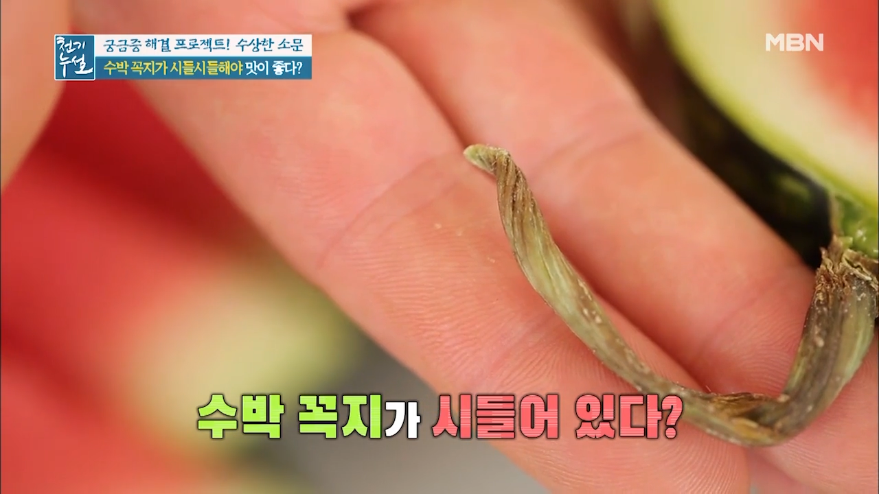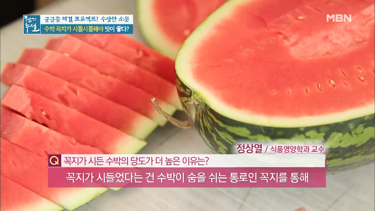 수박은 수확한 후에 숙성되는 과일로 꼭지를 통해 숨을 쉬는 수박이 꼭지를 통해 수분을 날려 보낸 것입니다. 때문에 꼭지가 시들해졌다면 수박에서 수분이 빠지면서 당분이 응축돼 단맛이 강해진 것입니다.