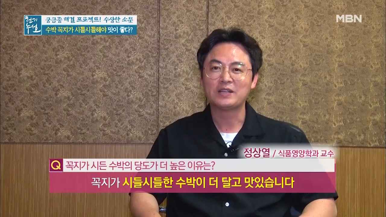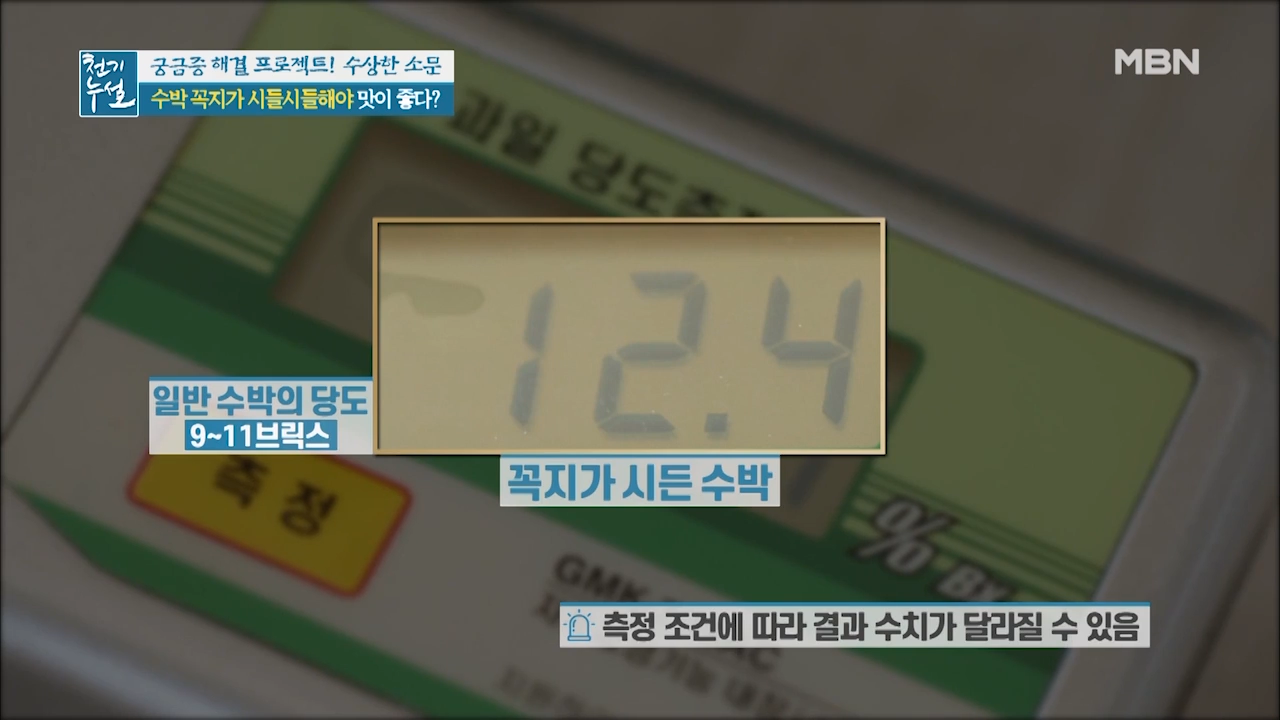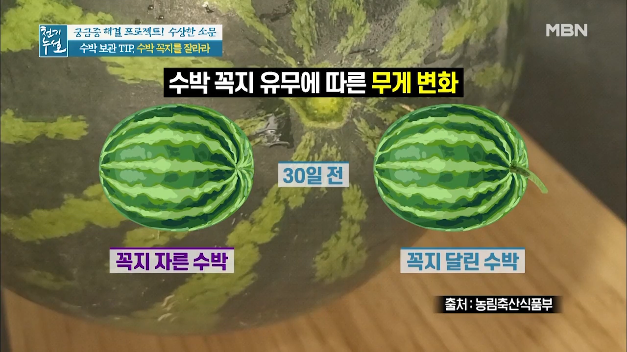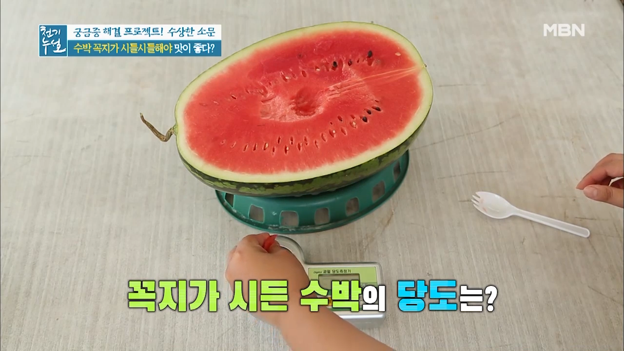 수박은 수확한 후에 숙성되는 과일로 꼭지를 통해 숨을 쉬는 수박이 꼭지를 통해 수분을 날려 보낸 것입니다. 때문에 꼭지가 시들해졌다면 수박에서 수분이 빠지면서 당분이 응축돼 단맛이 강해진 것입니다.