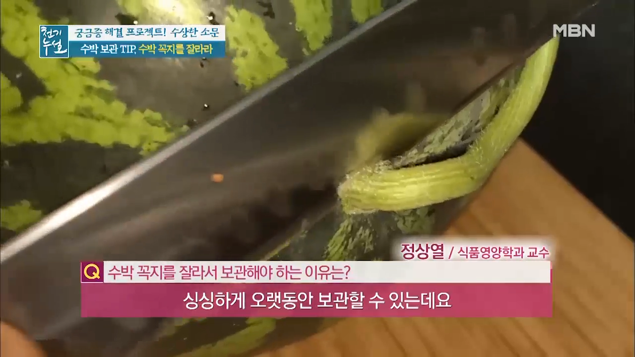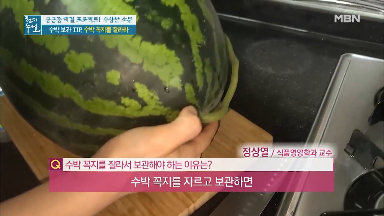 수박의 꼭지를 잘라서 보관하는 것입니다.