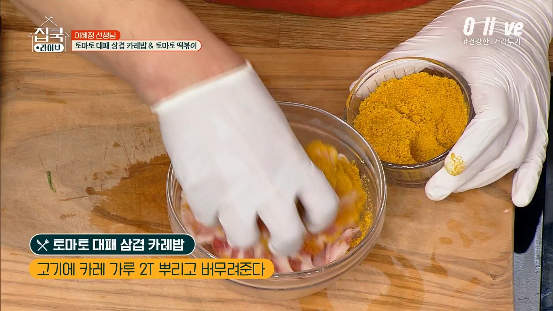 올리브 TV 집쿡 라이브에 소개된 이혜정 선생님의 토마토 대패 삼겹 카레밥 레피시입니다. ^^