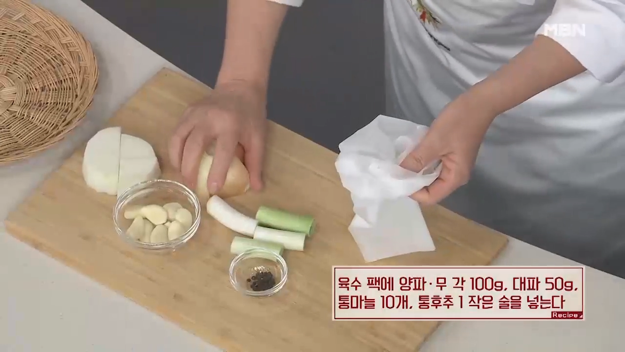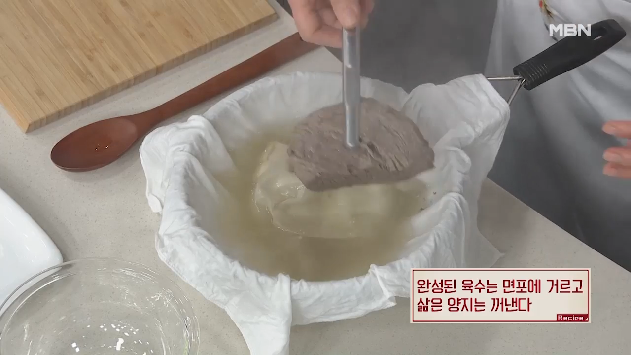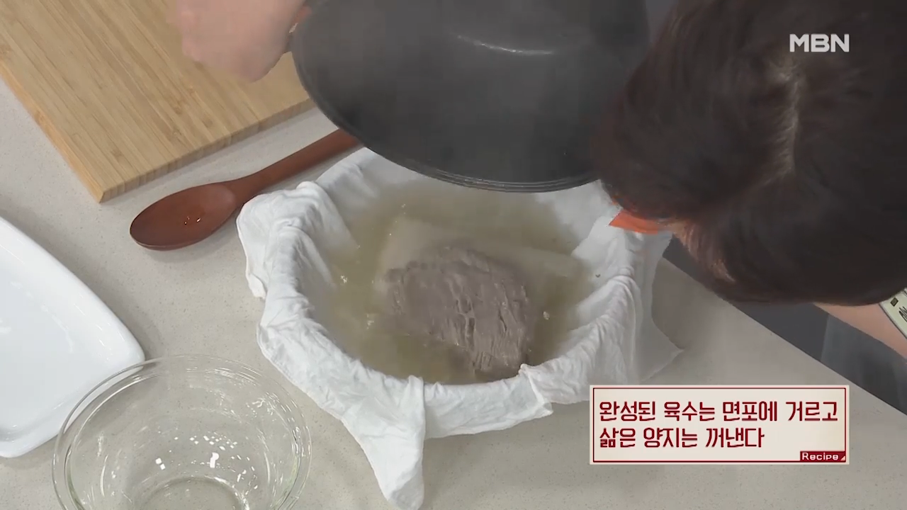 ※육수를 면포에 거르면 부유물이 제거돼 훨씬 맑고 깔끔한 육수를 만들 수 있습니다.