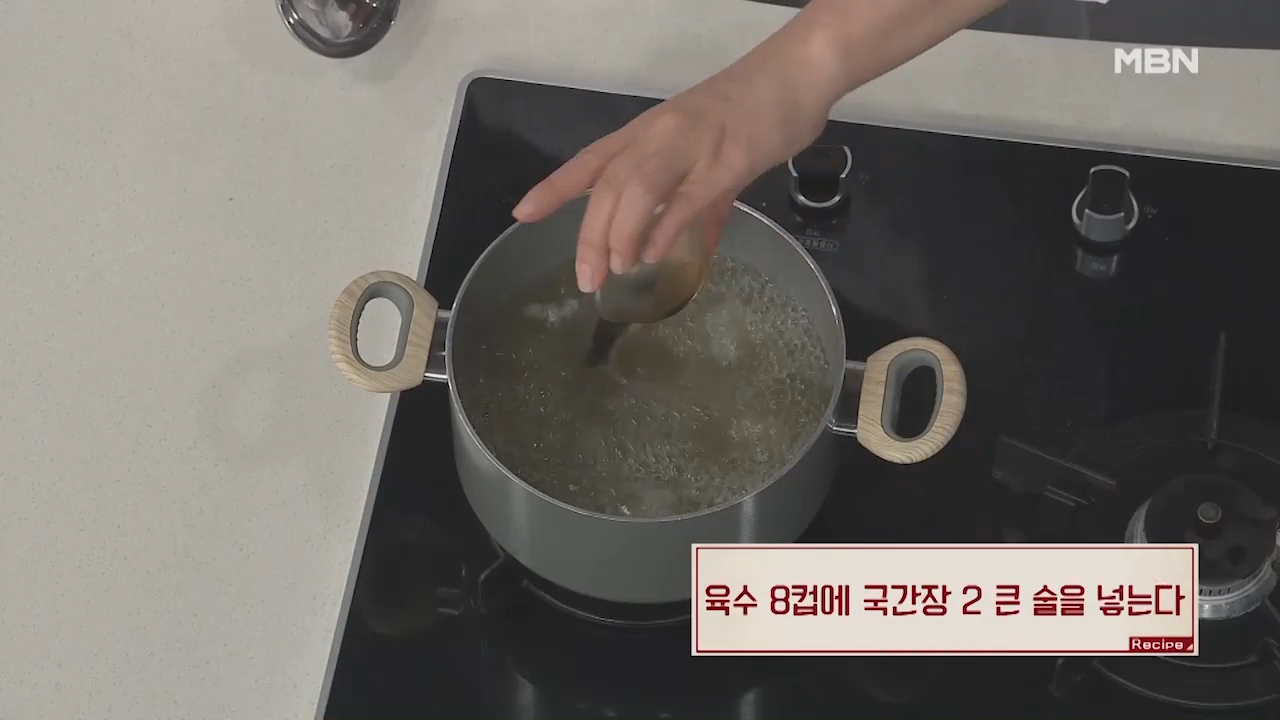 ▶육수 8컵에 국간장 2큰술을 넣어줍니다.
