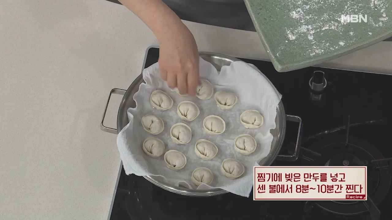 ▶찜기에 빚은 만두를 넣고 센 불에서 8분~10분간 쪄줍니다.