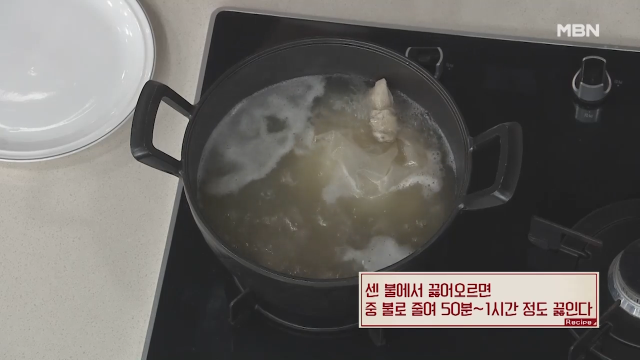 센 불에서 끓어오르면 중 불로 줄여 50분~1시간 정도 끓여 줍니다.