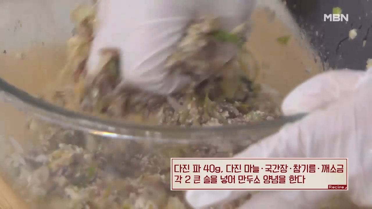 ▶간 우둔살 200g을 넣어줍니다. 떡만둣국용 만두 60개 분량입니다.