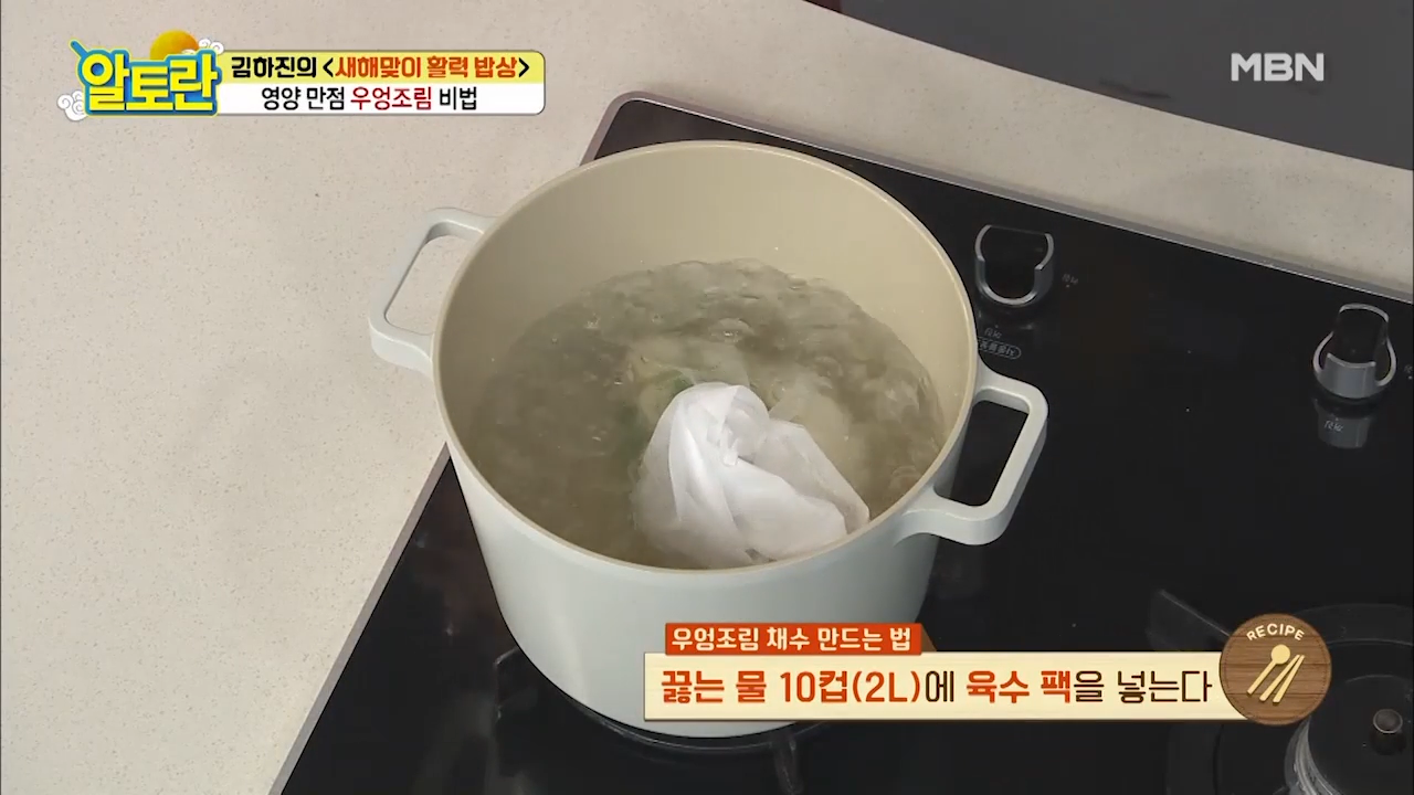 ▶끓는 물 10컵(2L)에 육수 팩을 넣어줍니다.