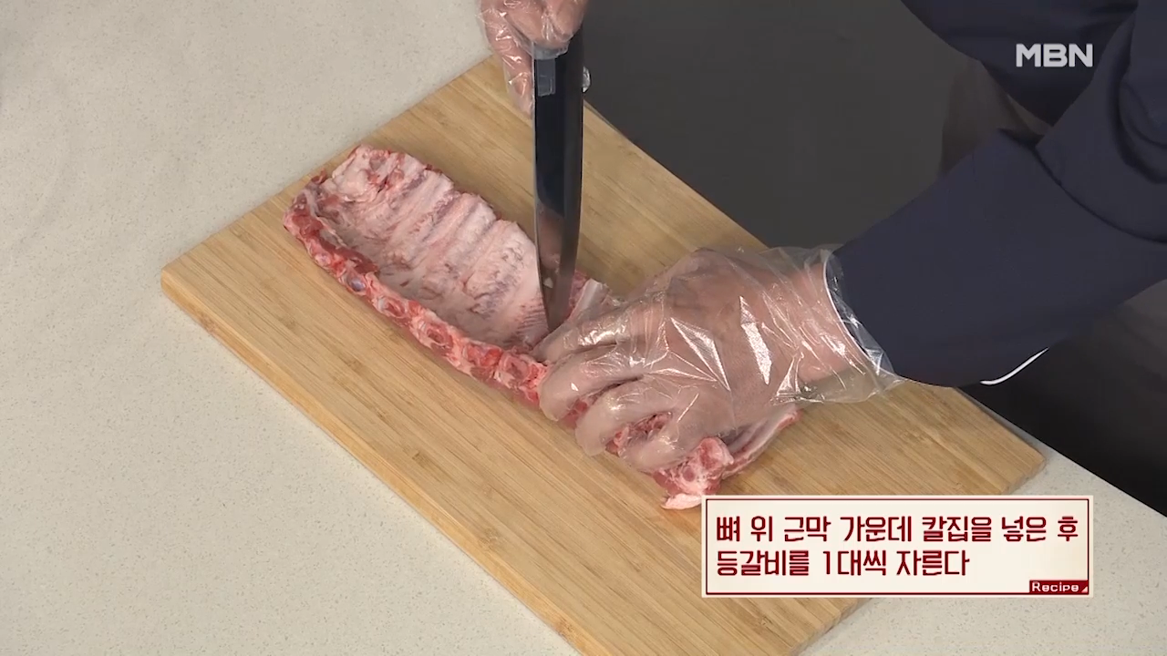 ▶칼집을 넣은 등갈비를 1대씩 잘라줍니다.