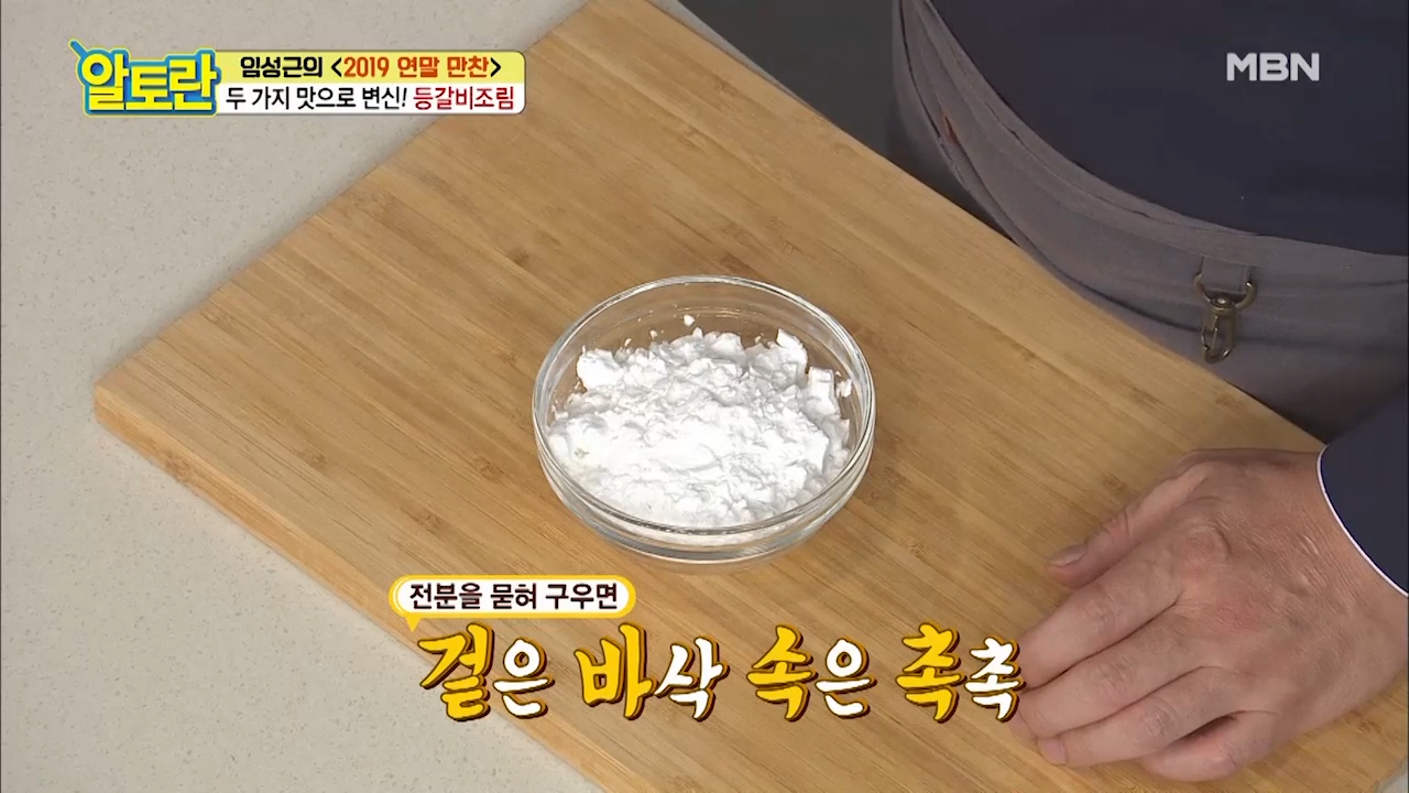 ※등갈비에 전분을 묻혀 구우면 밀가루보다 열에 강해 쉽게 타지 않기 때문에 겉은 바삭 속은 촉촉하게 등갈비를 구울 수 있습니다.