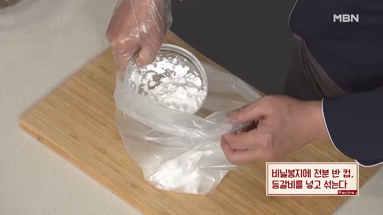 ▶등갈비의 식감을 위해 전분은 가볍게 묻혀 줍니다.