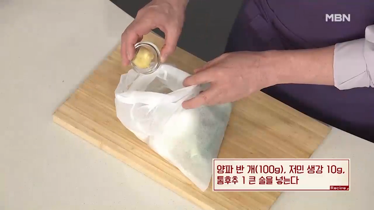 ▶잡내를 잡아줄 저민 생강 10g과 통후추 1큰술을 넣어줍니다.