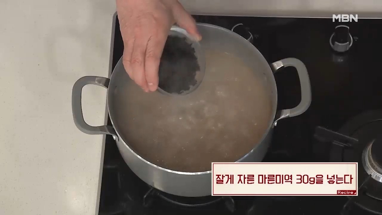 ▶잘게 자른 마른미역 30g을 넣어줍니다.