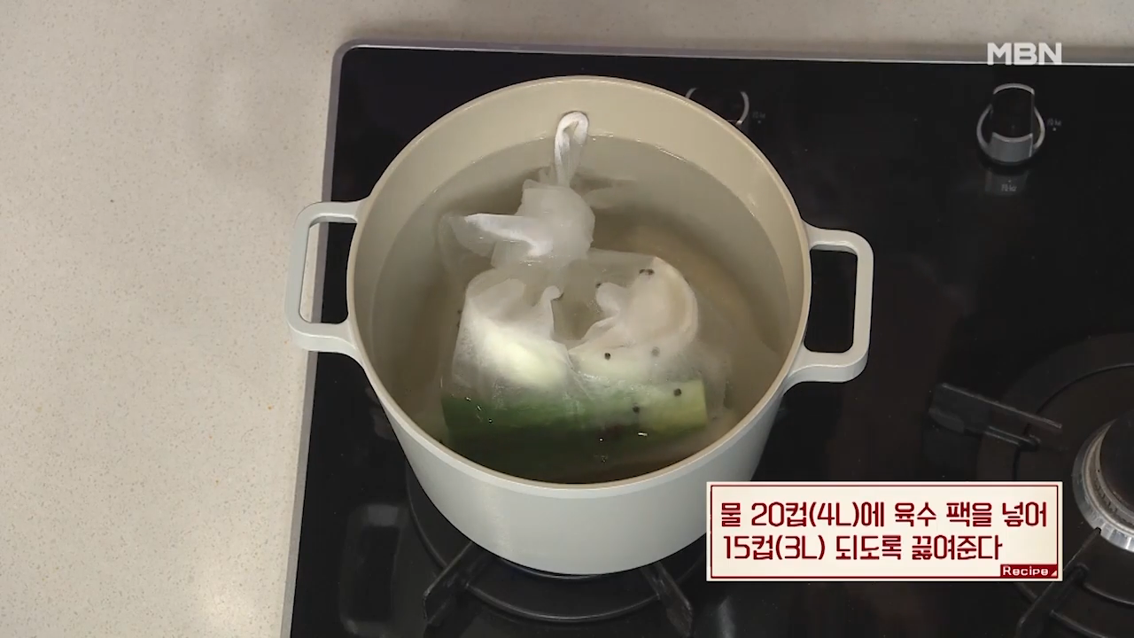 ▶채수를 끓이는 시간은 물 20컵이 15컵이 될 때까지 약 20분간 끓여줍니다.
