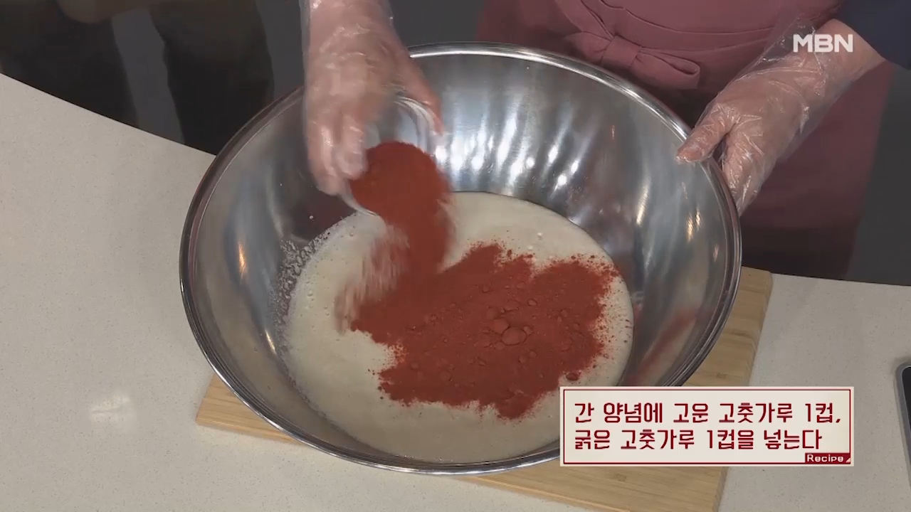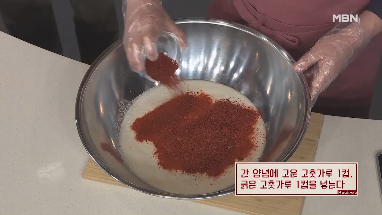 ▶고운 고춧가루 1컵을 넣습니다.