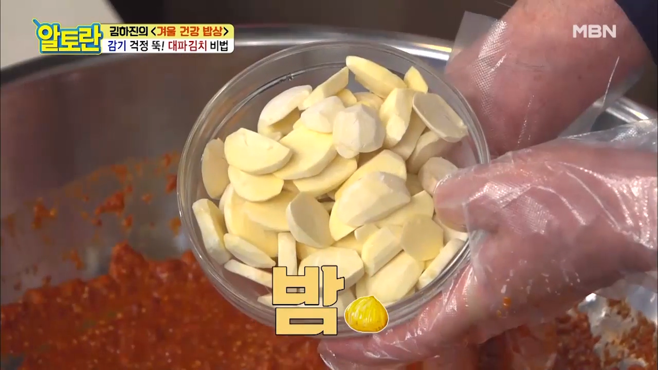 ※대파김치에 오도독한 식감을 더해줄 밤을 넣어줍니다.