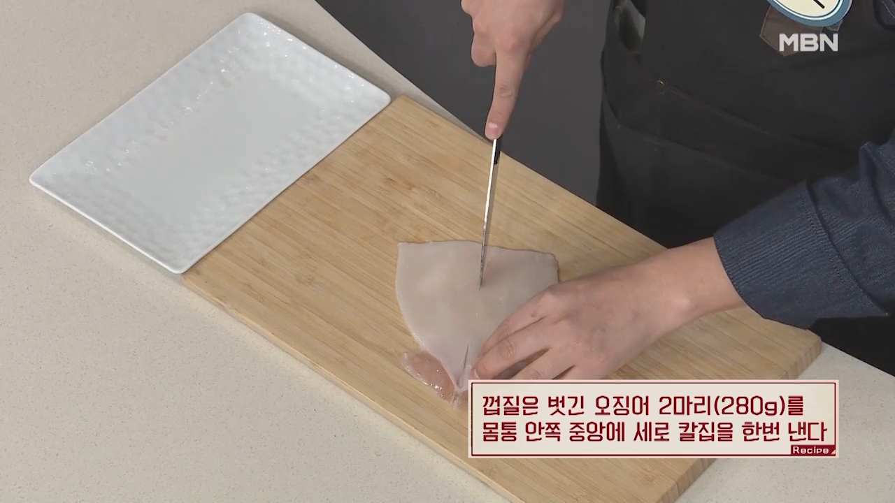 ※오징어 몸통 안쪽이 더 부드러워 칼집을 넣기가 편합니다.