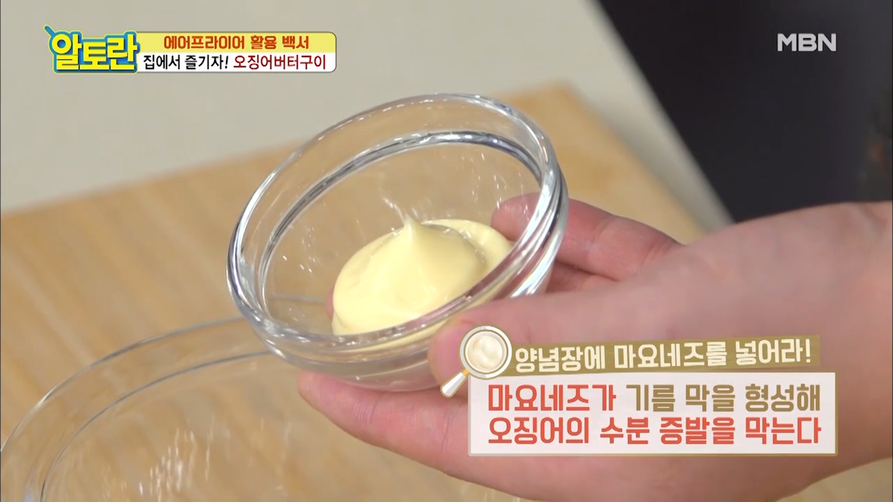 ※마요네즈가 기름 막을 형성해 오징어의 수분의 증발을 막아줍니다.