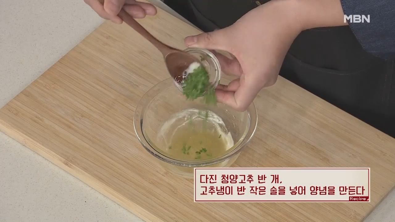 ※청양고추와는 다른 개운하고 알싸한 매운맛을 내는 고추냉이를 넣어줍니다.